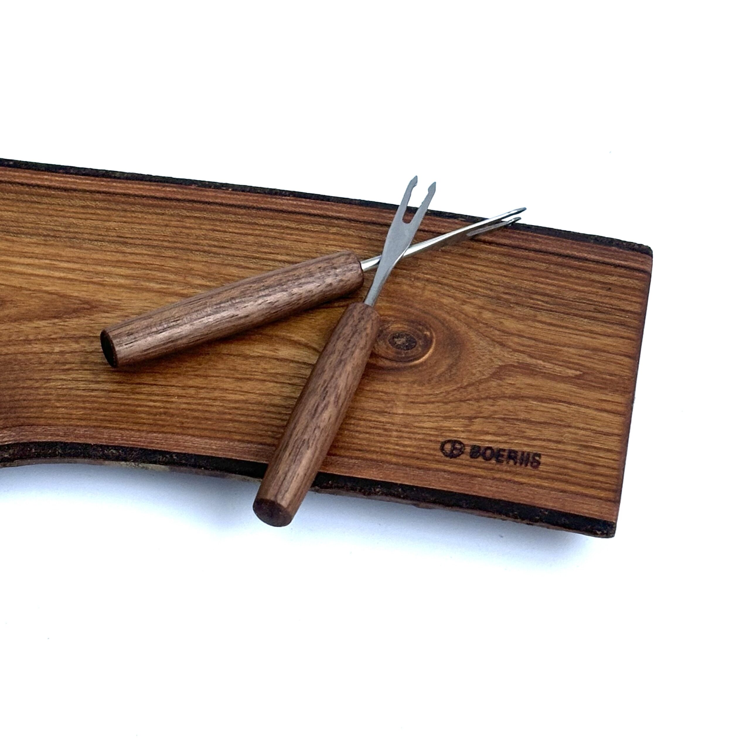 Hver gaffel er unik – drejet i hånden og med træets naturlige spil som en del af charmen. Et lille, men funktionelt stykke håndværk, der løfter serveringen og pynter på bordet.